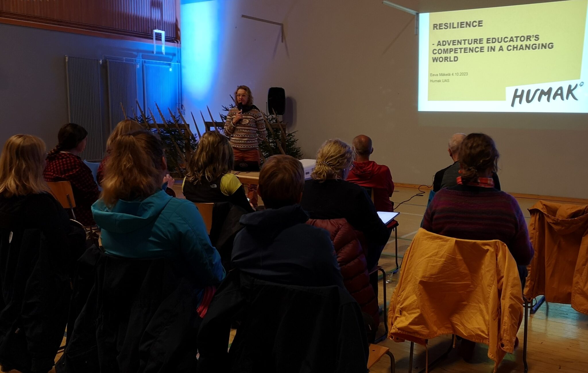 In the opening keynote speech of the conference our senior lecturer Eeva Mäkelä talked about resilience as one of the key compentences of future outdoor adventure educators and emphasized the importance of topics such as self-reflection, resilience and emotional intelligence, in order to better support students for uncertain future.