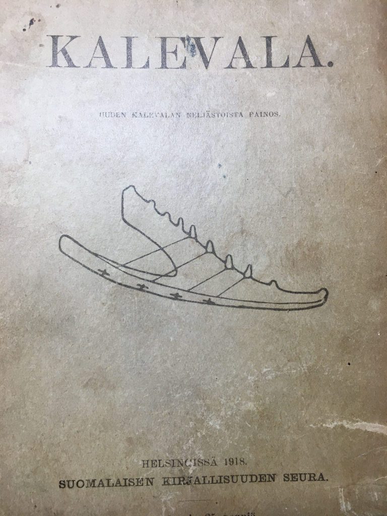 Kalevala cover page from 1918. There is a drawing of a kantele made out of a pike's jawbone. New Kalevala's 14th edition. Helsinki, The Finnish Literature Society, SKS. A great example of the power of words. Kalevala edition from 1918. Photo: Zita Kóbor-Laitinen.