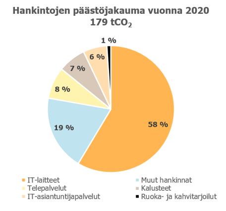 Hankintojen päästöjen huomioimisen myötä Humakin vuoden 2020 hiilijalanjälki kasvoi 16 prosenttia vuodesta 2019. Hankinnoista syntyvät päästöt kattavat jopa 34 prosenttia Humakin hiilijalanjäljestä ja näistä suurimpana IT-laitteet lähes 60 prosentin osuudella. Hankinnoissa huomioitiin IT-laitteiden ohella muun muassa IT-asiantuntija- ja telepalvelut, kalusteet, viestinnän markkinointimateriaalit, kirjastojen materiaalit sekä ruoka- ja kahvitarjoilut. IT-laitteiden suuri osuus ei ole yllättävä, sillä elektroniikkateollisuus on yksi maailman merkittävimmistä päästölähteistä. Lisäksi digitalisaatio lisääntyy entisestään kattavampien mobiilipalveluiden ja striimattujen videoiden myötä (ks. esim. https://yle.fi/uutiset/3-10832413).