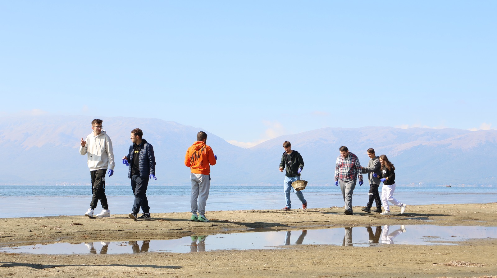 Nuoret itse suunnittelemansa luonnon puhdistamiseen ja roskien keräämisen keskittyvän aktiviteetin parissa keräämässä roskia luonnosta Pohjois-Makedonian Bitolassa meren rannassa. Kuva; FATE- hanke.
