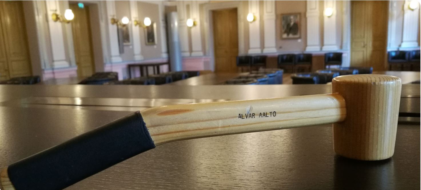 Valtuustosalin puheenjohtajan nuija. Kuva: Jyväskylän kaupunki.