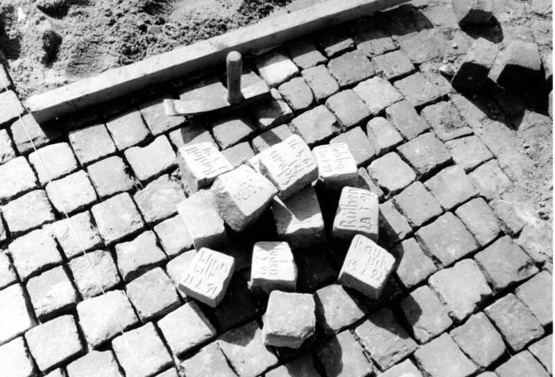 Kuva 1. Taideteosta varten työstettyjä katukiviä. Kuva: Martin Blanke / jochengerz.eu.