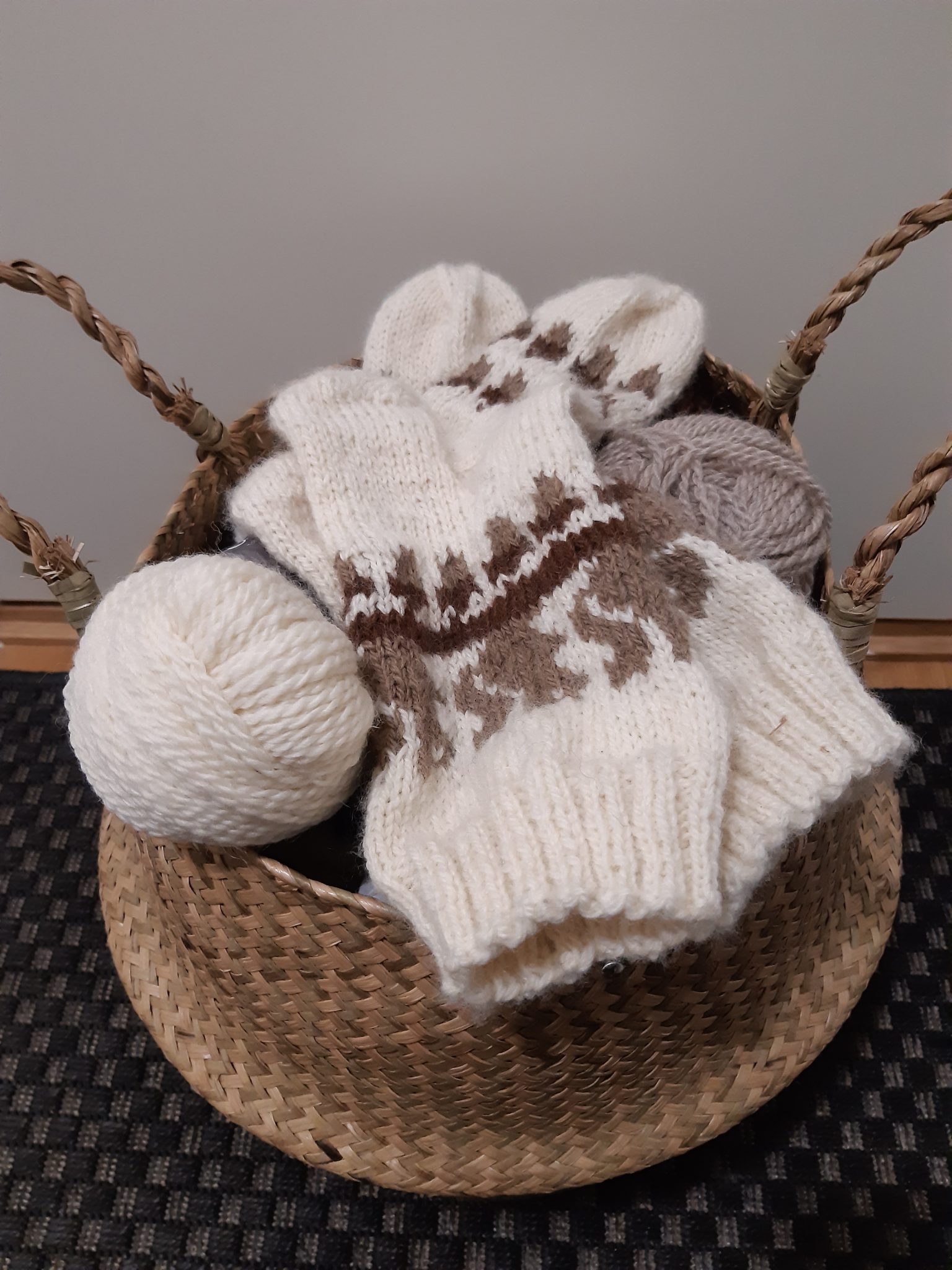 Lankakorin päällä on villasukkapari. Neuletöistä on tullut suosittu harrastus.