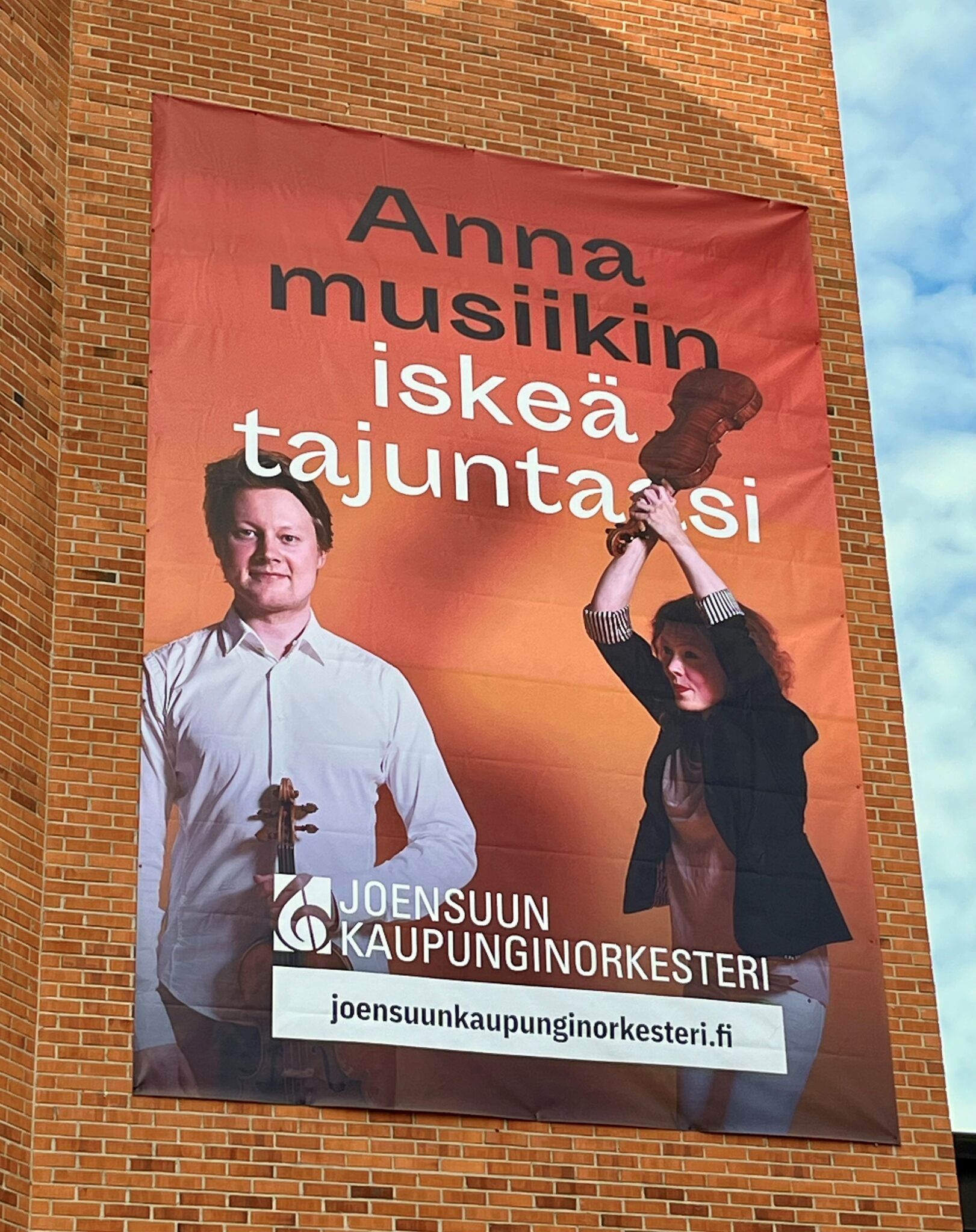 KUVA 2: Joensuun kaupunginorkesterin mainosjuliste kertoo musiikin voimasta. Kuva: Seppo Tiensuu.