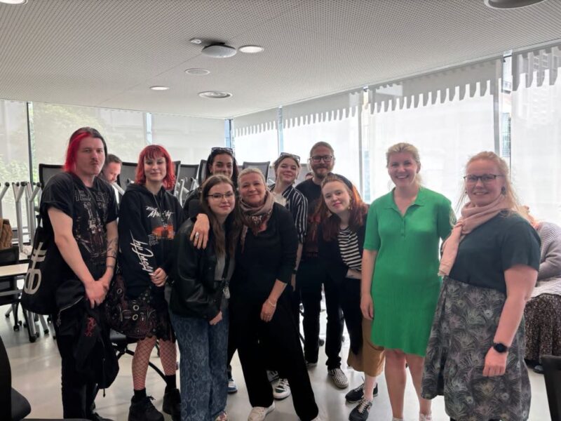 Kuvassa parinkymmenen hengen ryhmäkuva otettuna sisätilassa. Osallistujat ylärivissä (vasemmalta) Anton Welling, Julia Ylä-autio, Milla Aho, Lilja Lehtonen, Patrik Oksanen. Osallistujat eturivissä vasemmalta Maria Timonen, Sari Huttu, Saara Karttunen, Angela Heikkilä ja Suvi Tuominen.