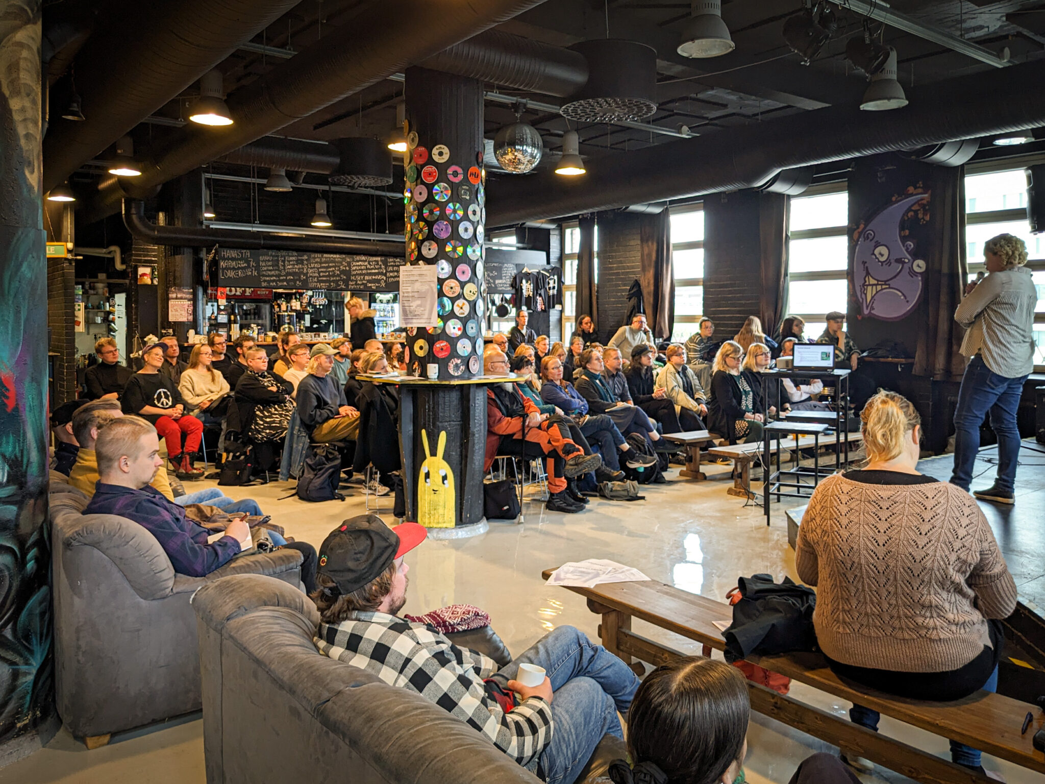 Sutinen toi esiin kulttuurialan vaikuttamisen kannalta kiinnostavalla ja hauskasti tyypittelevällä tavalla erilaisten tilannesidonnaisten puhetapojen käytön merkityksen. Kun esimerkiksi puhutaan ”kokoomusta”, on tärkeää painottaa kirjailijuutta yrittäjyytenä, puhuttava yritystuista ja muistettava taloudelliset vaikutukset. ”Keskustaa” puhuttaessa on taas hyvä asemoitua alkutuottajaksi ja hakea samaistumispintaa maataloustukien kautta. Kyse on siis vaikuttamistyöstä, lobbaamisesta, ja tähän ovat lähteneet mukaan viimeisimpänä myös Kuvaston toimijat.