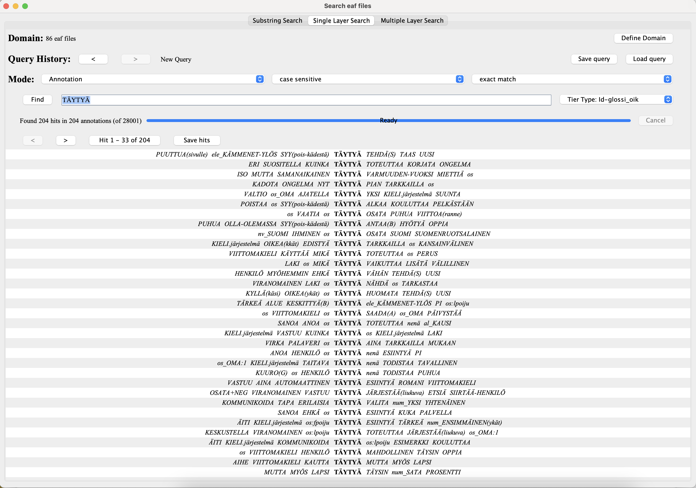 Katsomalla lauseita, joissa tietty viittoma esiintyy, voidaan siis tehdä analyysiä kyseisen viittoman merkityksestä, käyttöyhteyksistä ja käännösvastineista. Tässä tehtiin vain pikainen kurkistus TÄYTYÄ- ja PAKKO-viittomien käyttöön. Toivottavasti jotkut blogin lukijat innostuvat perehtymään korpuksiin ja tekemään niihin omia tutkimusmatkoja. Tällä hetkellä se vaatii Elan-ohjelman ja korpusaineiston lataamista omalle koneelle. Vaivannäkö kuitenkin palkitaan, kun ymmärrys viittomien merkityksistä laajenee. Lisäksi korpuksilla voi tehdä paljon muutakin!