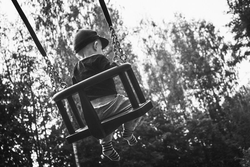 Mustavalkoisessa kuvassa pieni lapsi istuu keinussa, jossa asianmukainen turvakaari estää keinusta putoamisen. Palveluiden kilpailutuskriteerien määrittelyllä pystytään vaikuttamaan moniammatillisen yhteistyön edistämiseen esimerkiksi lastensuojelun tehtävissä. Oikein sovellettuna moniammatillisuus parantaa palveluiden laatua ja vahvistaa asiakasturvallisuutta. Kuva: Kuvia Suomesta -kuvapankki.