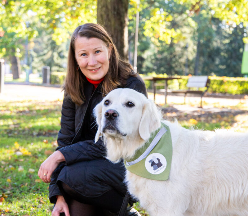 Työparinani opetuksessa ja ohjauksessa toimii kultainennoutaja Luna. Koira tuo opetukseen ja ohjaukseen muun muassa iloa, osallisuutta, hetkeen keskittymistä ja rentoutta sekä onnistumisen ja merkityksellisyyden kokemuksia.